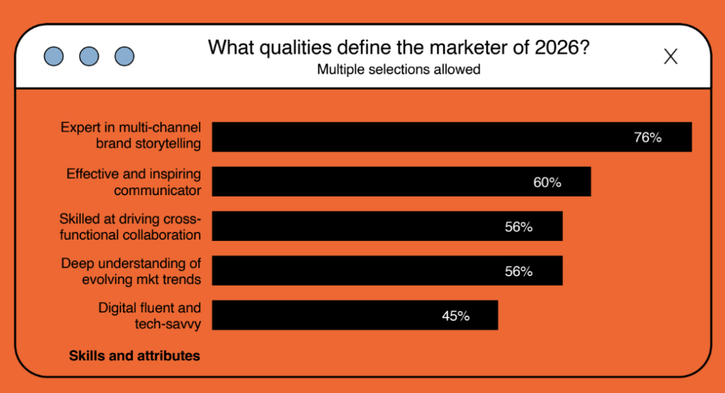 Looking ahead to 2026, 76% of CMOs agree that the most important quality for marketing leaders will be expertise in multi-channel brand storytelling.