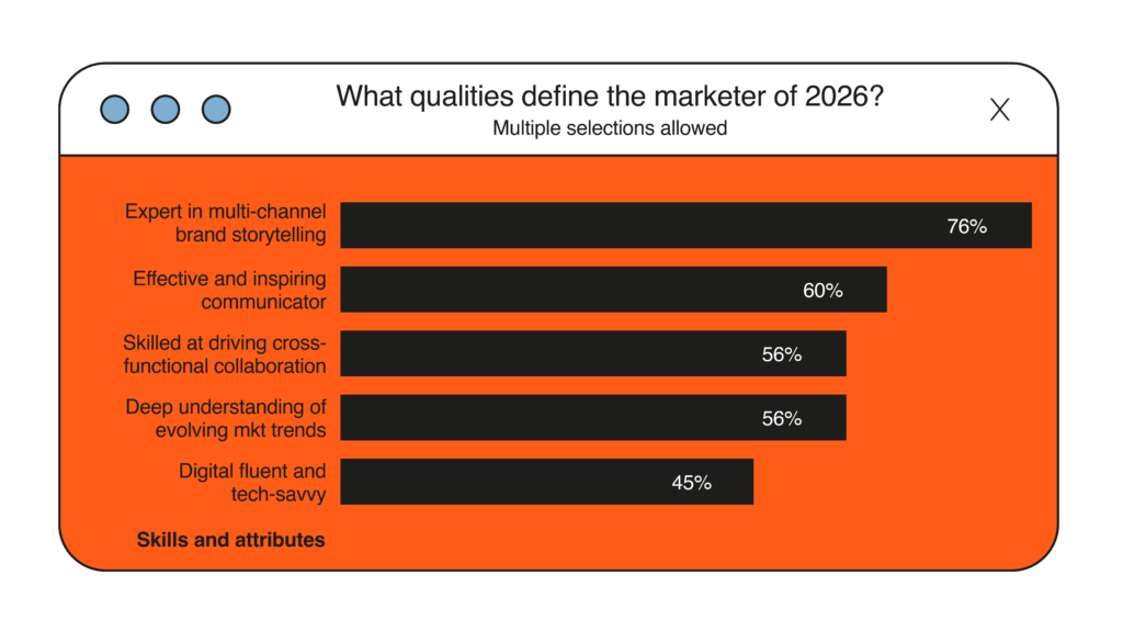 Looking ahead to 2026, 76% of CMOs agree that the most important quality for marketing leaders will be expertise in multi-channel brand storytelling.